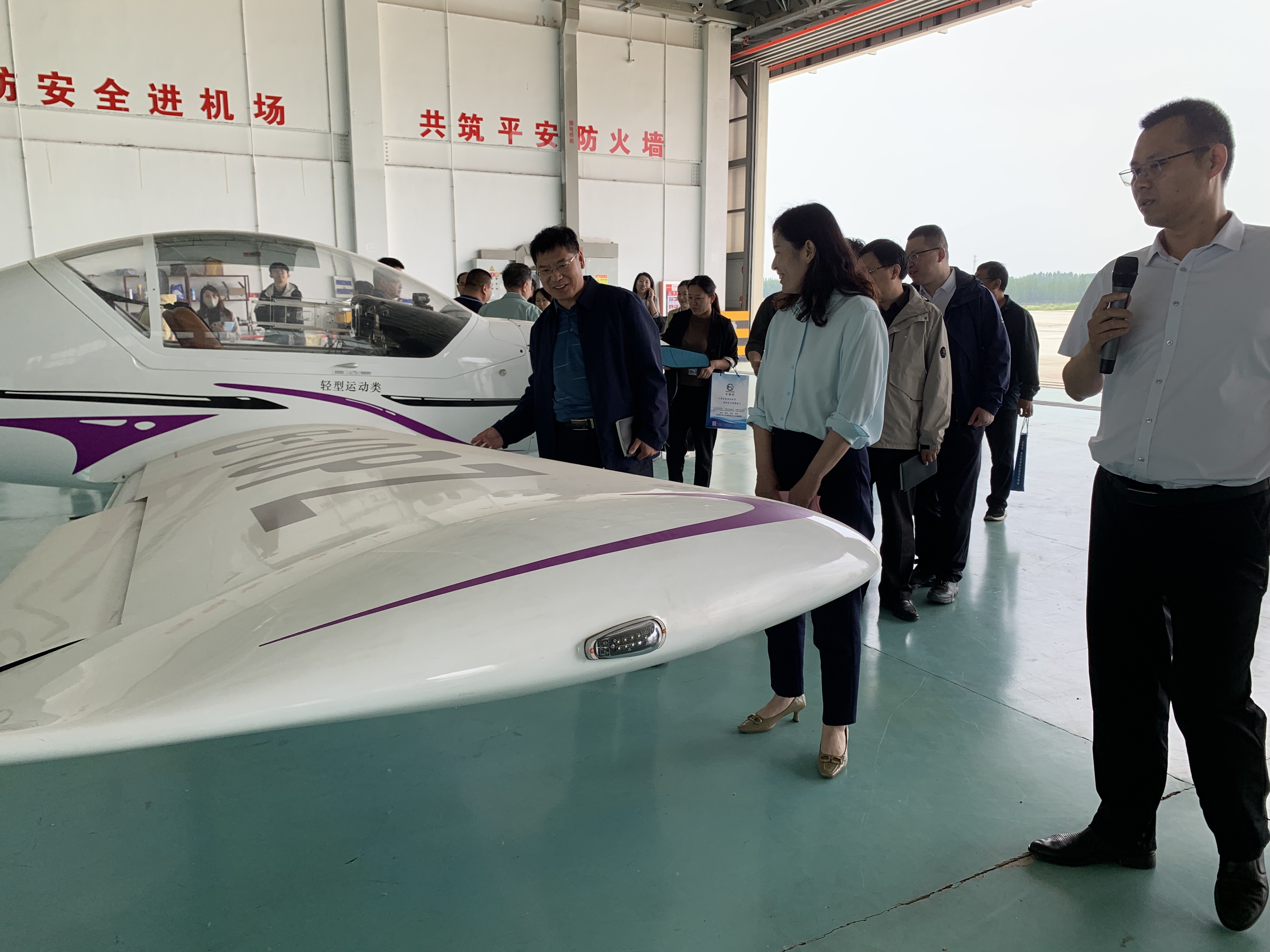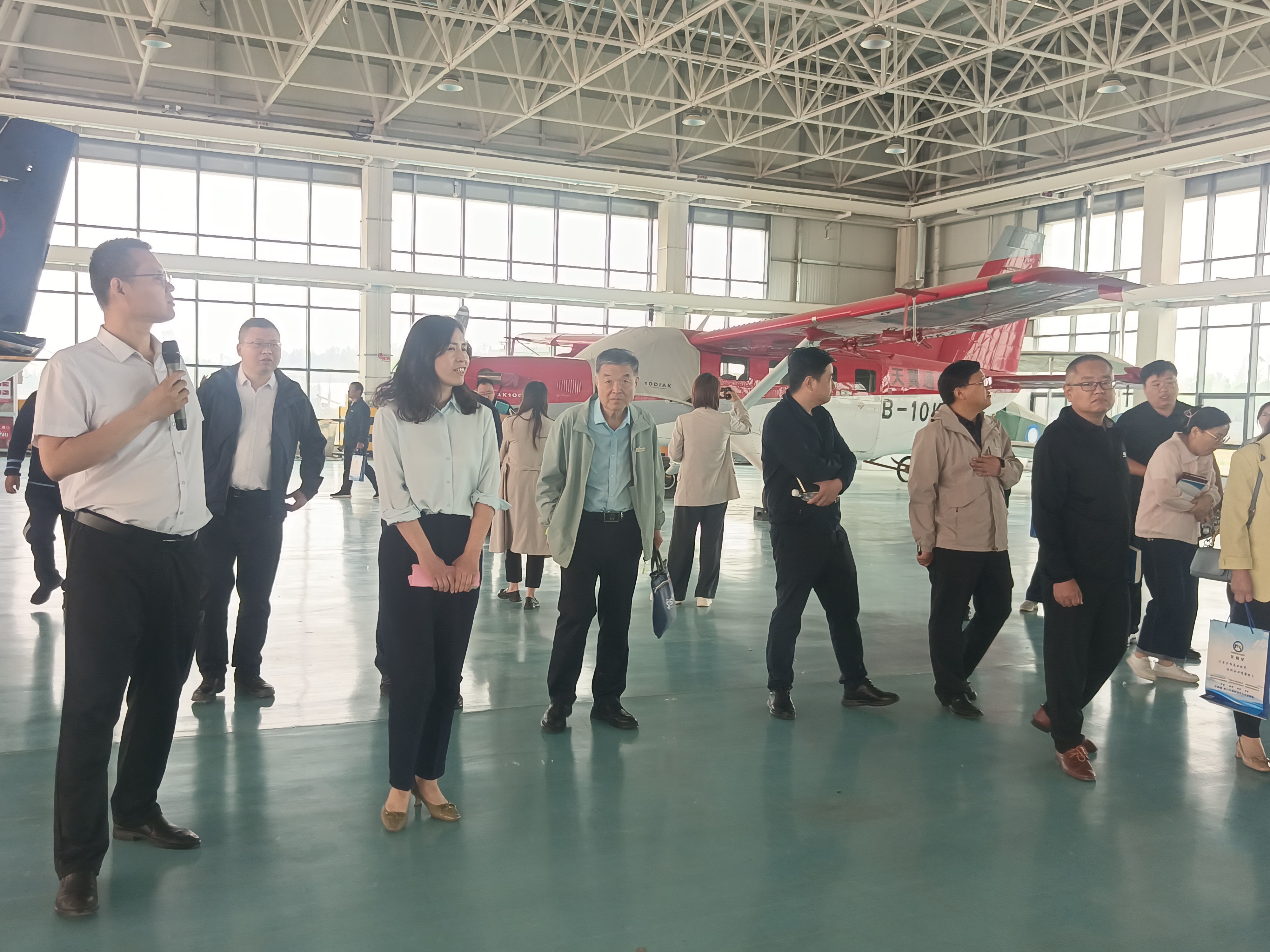 在集中参观低空领域科技成果展示部分,参会人员观看通用机场宣传片,实地参观机场航站楼、停机坪、机库、退役飞机交易中心等地,近距离感受低空领域的科技魅力与发展成果。