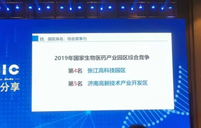 本网讯:【社会发展科技处报道】近日,2020中国生物技术创新大会在苏州开幕,现场发布《2020中国生物医药产业园区竞争力评价及分析报告》。济南高新区凭借产业环境、人才竞争力等综合优势蝉联国家第一集团,连续四年位居全国五强,并在产业和人才两项单项竞争力榜单中排名前列!此次排名是由国家科技部机构对国家级高新区生物医药产业综合竞争力进行排名,具有权威性和指导性。排名前三的产业园区分别为中关村国家自主创新示范区、苏州工业园区、成都高新技术产业开发区。