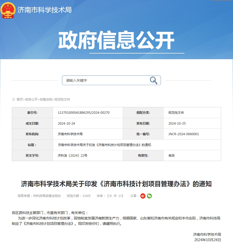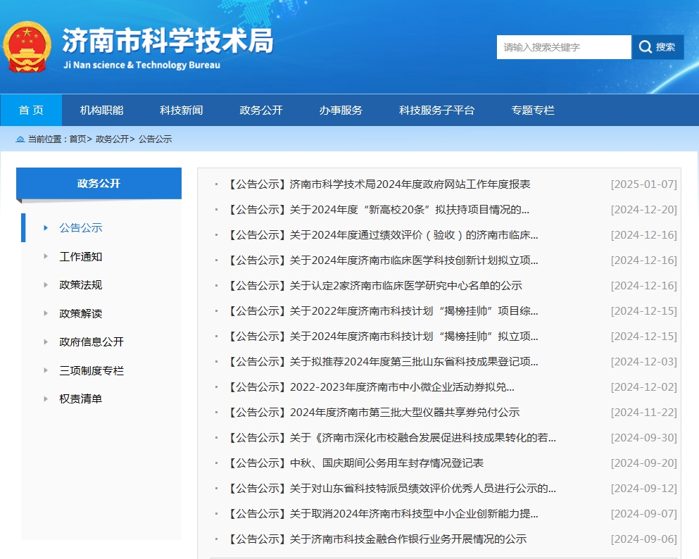 2024年,济南市科学技术局认真落实党中央及省、市政务公开有关工作部署,将《2024年济南市政务公开工作要点》切实贯彻落实到位,推动政务透明化、服务高效化。